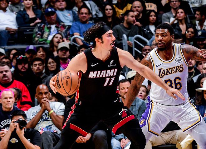 后半段东契奇内突外投打停热火后,里夫斯续上三分,节末拉拉维亚也爆发,半场湖人77-63热火。进入下半场,湖人进攻节奏放缓,阿德巴约联合拉松不断缩小分差。关键时刻,还是里夫斯和斯马特两记三分止血。不过维金斯联合哈克斯再度打出小高潮,双方维持在5-8分左右陷入拉锯战。拉拉维亚绝对是被严重低估的射手,联合东契奇帮助湖人稳定住节奏,三节打完时,湖人102-98热火。第四节决战,哈克斯和约维奇连续补篮,湖人已经丧失领先优势。危急时刻八村塁三分雪中送炭。